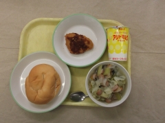 6/23 フィッシュバーガー はっこう乳 野菜のスープ煮