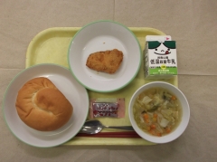 7/14 パン メープルジャム 牛乳 サーモンフライ ピースープ