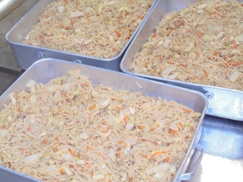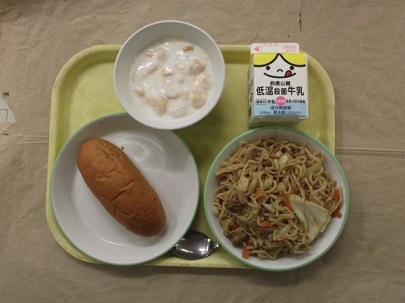 ★今日の焼きそばは,豚肉にいか,たくさんの野菜を使い,ソース味に仕上げました。