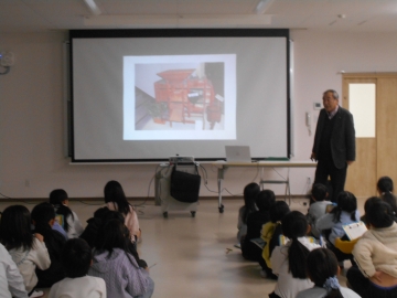 コミュニティスクールの諸戸さんに来ていただき、3年生を対象に「昔のくらし」の学習を行いました。