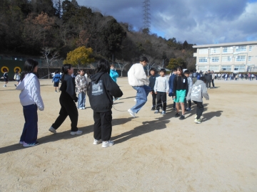 冬です。寒いです。縄跳びの季節です。休み時間にも短縄・長縄の練習をする子たちが増えました。20分休みを使って、全校で長縄記録会を行っています。各クラス2チームに分かれて、それぞれ2分間で何回跳べるか、記録に挑戦しています。
