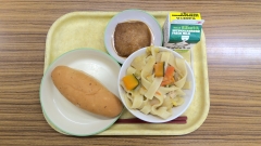小型玄米パン 牛乳 ほうとう いなりもちの煮つけ
