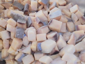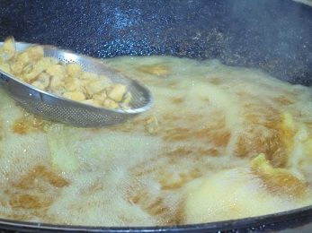 ★今日は,角切りにしたひらまさに酒としょうゆで下味をつけ,米粉,片栗粉,カレー粉をつけて油で揚げました。