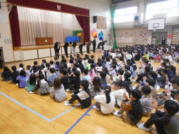 本日4月7日、新しく着任した教職員を迎え、体育館で着任式そして始業式を行いました。3月の修了式で最後のあいさつをして、ほんの少しの間会わなかっただけですが、子どもたちは1学年ずつ上がり、凛々しく見えました。
