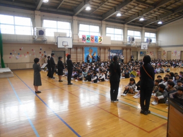 校歌を歌い、校長からの話の後に担任を発表しました。子どもたち最初から最後まで、姿勢を崩すことなく、真剣な表情で話を聞くことができました。とてもいい1年のスタートが切れたと思います。