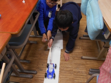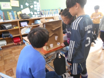 この3つの単元で学んだことを使って、科学おもちゃを作り、遊びながら復習していたのです。それぞれの班で趣向を凝らして、おもしろい工夫されたおもちゃを作っていました。