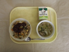 4/15 <みえ地物一番> 三重豚のビビンバ 牛乳 豆腐とたけのこのスープ