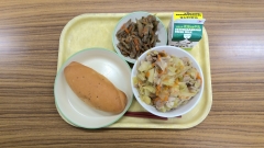 小型玄米パン 牛乳 ラーメン ごぼうの中華きんぴら