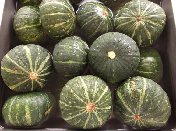 ★今日のフライドベジタブルには,緑黄色野菜のかぼちゃとオクラを使っています。緑黄色野菜には,目や皮膚,粘膜を丈夫にするβ‐カロテンという栄養がたくさん含まれています。このβ‐カロテンは油といっしょに食べると,体に吸収されやすくなります。