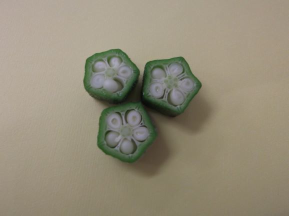 ★オクラのネバネバは,お腹の調子をよくしてくれる働きがあるので積極的にとりたい野菜です。切り口が星の形をしているので形も楽しめますね(^^♪