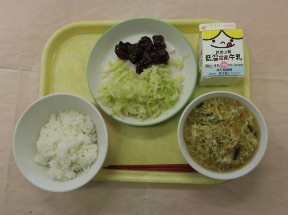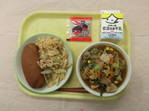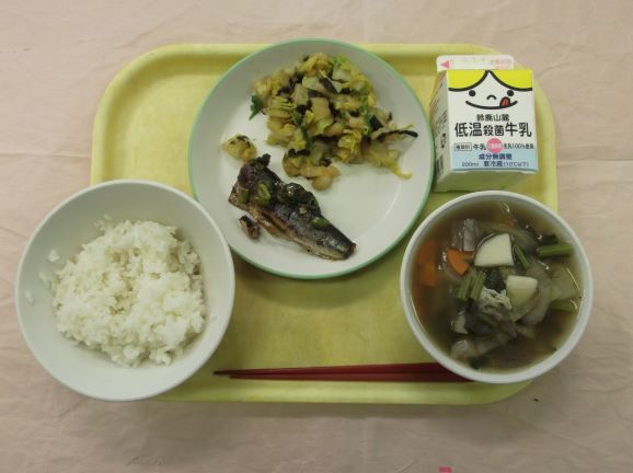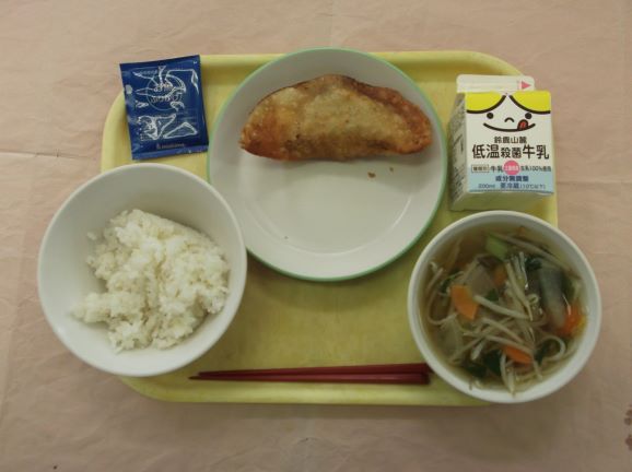 1月28日(月) ~全国学校給食週間~ <昭和20年代> 米飯 牛乳 くじらのノルウェー風 ゆでキャベツ 村雲汁 残菜・・・13kg  1月29日(火) ~全国学校給食週間~ <平成> 米飯 ふりかけ 牛乳 津ギョーザ 魚めんのスープ 残菜・・・4.5kg  1月30日(水) ~全国学校給食週間~ <昭和40年代> コッペパン 牛乳 カレーシチュウ フルーツクリーム 残菜・・・0.7kg  1月31日(木) 米飯 牛乳 いわしのピリ辛煮 のりあえ のっぺい汁 残菜・・・7.5kg  2月1日(金) 小型玄米パン 牛乳 みそラーメン ベジタブルチップス 節分豆 残菜・・・6.5kg  |