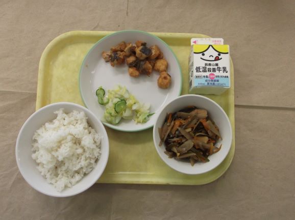 ・7月の献立テーマは「夏いっぱいメニュー」です。今月の給食には夏にとれる,おいしい旬の野菜がたくさん使われています。今日の即席漬に入っているきゅうりは,今が旬の夏野菜です。きゅうりには水分が多く,体を冷やす働きがあります。暑い夏に必要なビタミンも含まれているので,夏ばて予防にとてもよい野菜です。