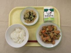 7/12 米飯 牛乳 鶏肉とじゃがいもの中華炒め 海そうサラダ