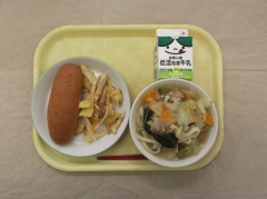6/11 小型玄米パン 牛乳 しのだうどん ベジタブルチップス