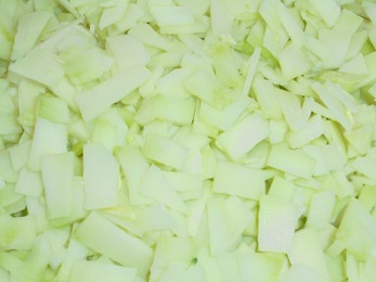 ↑ 給食では柔らかい茎の部分も使います。