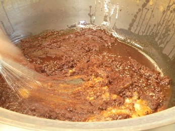★ビビンバは人気メニューのひとつです。赤みそ,さとう,みりん,トウバンジャン,ごまを入れて作った給食特製のみそだれで,ごはんが野菜や肉と一緒においしく食べられます。