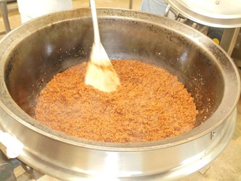 ↑ ひき肉が入った肉みそを作ります。肉みそにもトウバンジャンが入っています。