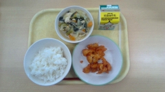 米飯 牛乳 ヤンニョムチキン キャベツのうま煮