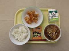 作って、給食室の大きな釜で揚げて作ります。