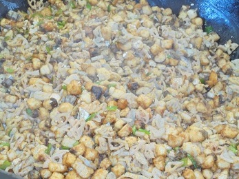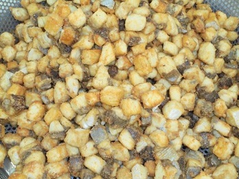 ★三重県産のぶりとうすく切ったれんこんを油で揚げて,砂糖としょうゆで甘辛く味つけをしました。冬のおいしさを味わっていただきました!