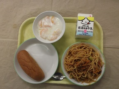 夏野菜のスパゲッティ みかん入りヨーグルト