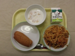 4/16小型玄米パン 牛乳 スパゲティ フルーツヨーグルト