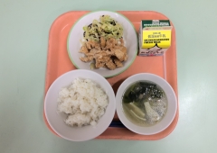 米飯 牛乳 鶏肉のからあげ 昆布あえ ワンタンスープ