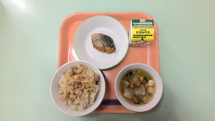 たけのこご飯 牛乳 さわらの香味あげ すまし汁
