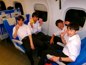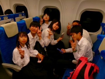 新大阪までの新幹線車内です。トランプなどのカードゲームで盛り上がっています。