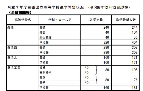 本日、三重県立高等学校の後期選抜の志願状況が発表されました。