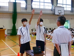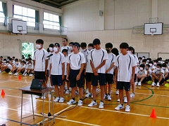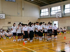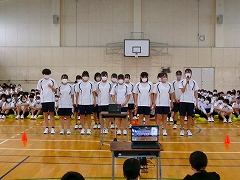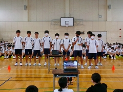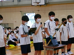 本日の6限目に、中体連三泗予選大会、NHK音楽コンクール、三重県吹奏楽コンクール、科学の甲子園ジュニア三重県大会の壮行会、および、文化部の活動報告会を行いました。