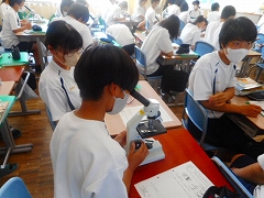 2年生の理科の授業では、植物の葉緑体を顕微鏡で観察していました。