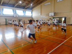 グラウンドでの授業を予定していましたが、急きょ体育館で行うことにしました。