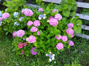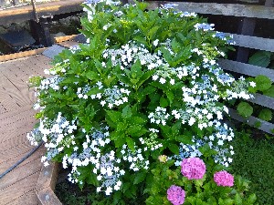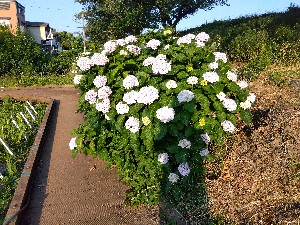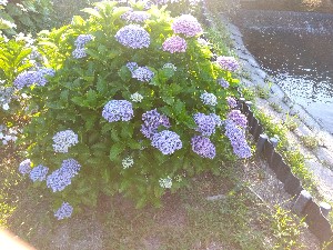 色々な種類のアジサイがあるのでしょうか、白、水色、ピンク色などの色とりどりの花が、きれいで、しばらく見入ってしまいました。