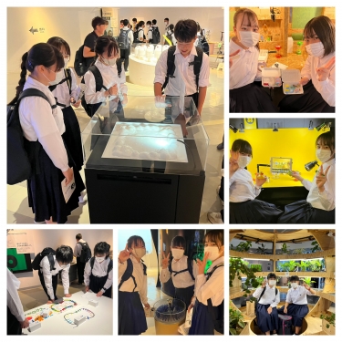 地球温暖化問題について学べるコーナーや、「観る、つくる、伝える」体験ができるコーナーがありました。生徒らは、動画作成のコーナーや、未来のお弁当作りのコーナーなど夢中になって体験していました。