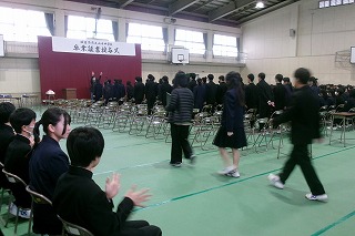 今日の3・4限目に卒業式のリハーサルを行いました。今日のリハーサルは2年生が見学しました。