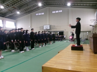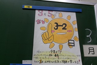 明日は中学校生活最後の日です。そして、卒業式本番です。みなさんの中学校生活3年間の中で最も大切な日です。明日、みなさんの立派に成長した姿を、お家の人や地域の方に見ていただき、安心していただくと同時に、感謝の気持ちを伝えましょう。