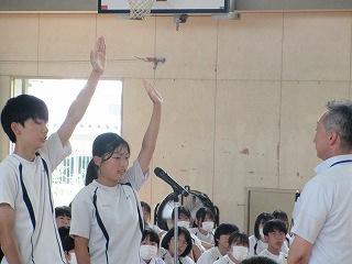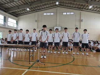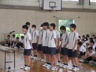 本日6限目に、今週からはじまる中体連の大会に向け、壮行会を行いました。