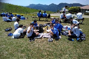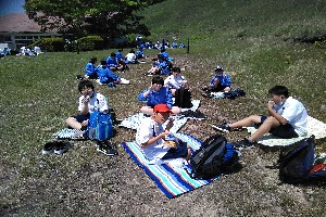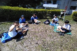 給食も美味しいけど、自然の中で食べるお弁当は格別。