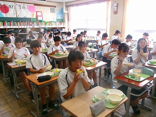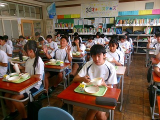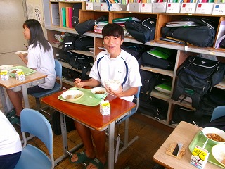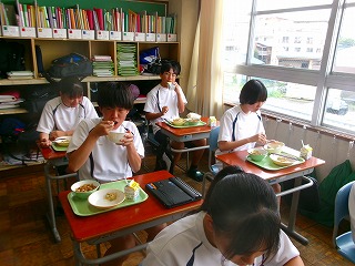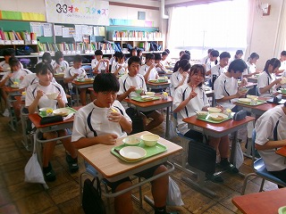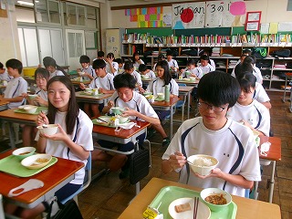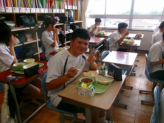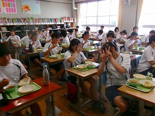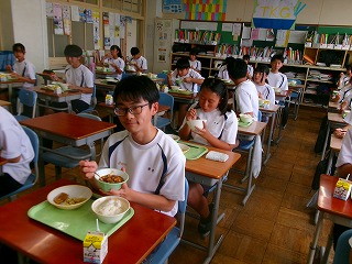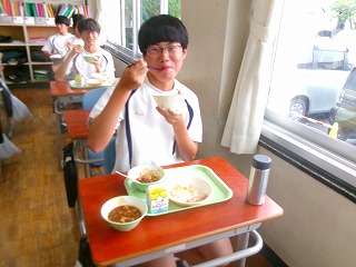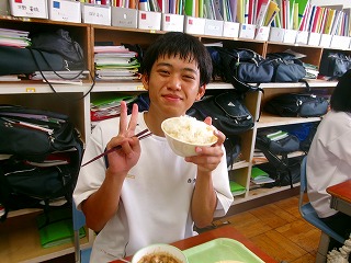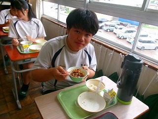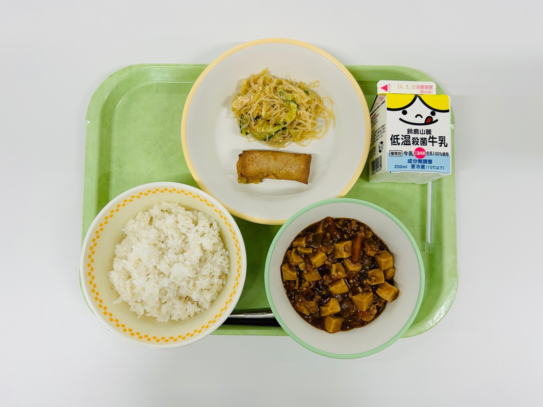 1学期最後の給食は、マーボー豆腐、春巻、バンバンジーサラダでした。