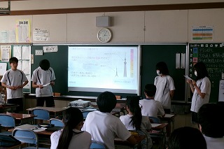 どの班の発表も写真の配置を工夫したりクイズをつくったりしていて、力作揃いでした。子どもたちは楽しそうにしながらも、一生懸命に自分の発表をしていました。