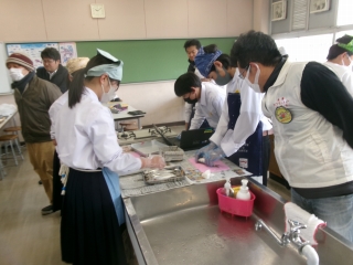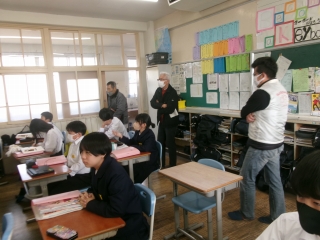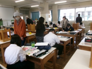 1年生の家庭科の調理実習、美術、国語、3年生の音楽などを参観していただきました。