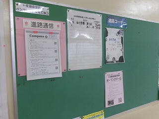 また、進路掲示板や階段の壁面、そして、3年生の教室に、ポスターやチラシが掲示してありますので、よく見ておきましょう。