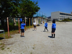 4限目の体育、グラウンドで自分で選択した種目の練習を行っていました。