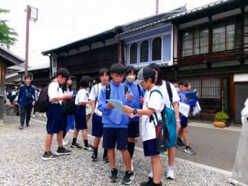 関宿散策スタートしました。クイズを解きながら、古い街並みを散策します。