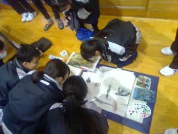 完成品の絵本を作るまで、たくさんの資料や取材、構想を練り、その上で、必要なものをそぎ落としたりしていく過程や、絵本を作り上げるには応援してくれるたくさんの人たちがいて、その人たちの支えによって成り立っていることなどのお話が印象的でした。