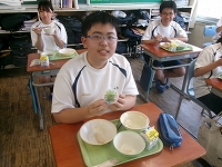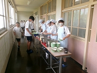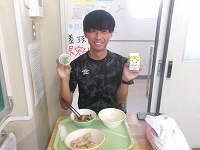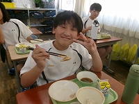 今日のメニューは、鶏肉の照り焼き、まこもたけの塩こうじ炒め、冬瓜のみそ汁、七夕ゼリーでした。