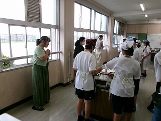 そして、1年生では、家庭科の調理実習「卵焼き」の様子を見ていただきました。
