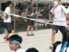 改めて2年生の学年種目は「蒼天突破」です。見た目もルールも面白い競技ですが、実際にやってみるとなかなか難しい競技です。2年生は何気なく飛ばしていましたが、4人1組で3mの高さを越えるように飛ばして、その後見事に受け止めるのはかなり大変です。それをあんなに楽しそうにできるのも2年生の凄いところだと感じています。