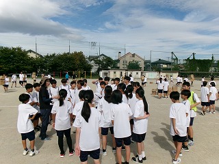 先週の金曜日の1限目に学年練習があり、学年種目「山手の宅急便」について練習しました。